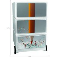 Mobilní designové kontejnery se čtyřmi zásuvkami pro ukládání kancelářských pomůcek. Přední plocha zásuvek z ABS plastu s foto vzorem. Pojízdnost zajišťují 4 kolečka, z nichž dvě jsou otočná. Užitné rozměry zásuvky jsou 32,5 x 13,3 x 40,5 cm. Záruka výrobce pro zákazníka : 10 let
