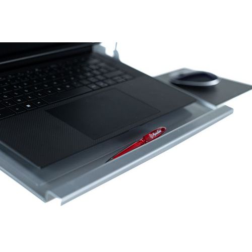 - Pojízdný výškově nastavitelný stojan na notebook s integrovaným držákem myši.