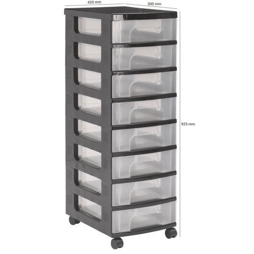 Mobilní stojan s úložnými boxy, 8 boxů, transparentní