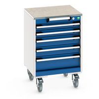 Mobilní zásuvková skříň Bott Cubio, 79 x 52,5 x 52,5 cm, 5 zásuvek, multiplex/linoleum/rohož