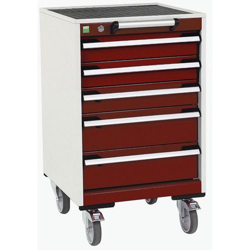 Mobilní zásuvková skříň Bott Cubio, 88,5 x 52,5 x 52,5 cm, 5 zásuvek, rohož, šedá-červená Mobilní zásuvková skříň Bott Cubio, 88,5 x 52,5 x 52,5 cm, 5 zásuvek, rohož, šedá-červená