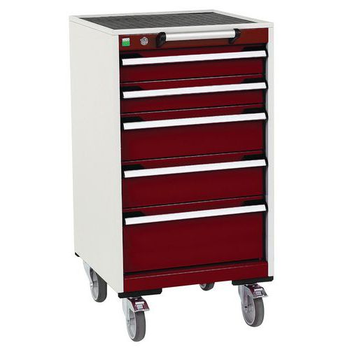 Mobilní zásuvková skříň Bott Cubio, 98,5 x 52,5 x 52,5 cm, 5 zásuvek, rohož, šedá-červená Mobilní zásuvková skříň Bott Cubio, 98,5 x 52,5 x 52,5 cm, 5 zásuvek, rohož, šedá-červená
