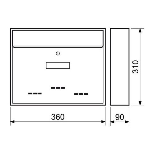 - Kovová poštovní schránka s otvory pro částečný průhled do jejího vnitřku.