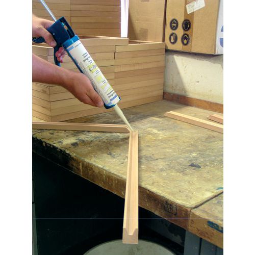 spojuje bez problémů veškeré materiály ve vnitřních oblastech jako jsou dřevo, dřevotřísku, vlákna a sádrokartony, beton, mramor, kámen, keramiku, sádru, kovy, tuhé pěny (např. pěnový polystyren), stejně tak i mnoho umělých hmot (kromě PE, PP, PTFE) spolu i navzájem