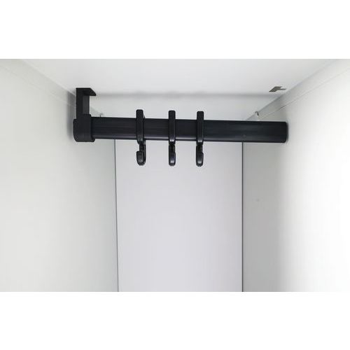- Odkládací polička ve vrchní části skříně, tyč se dvěma háčky pro zavěšení oděvů.
