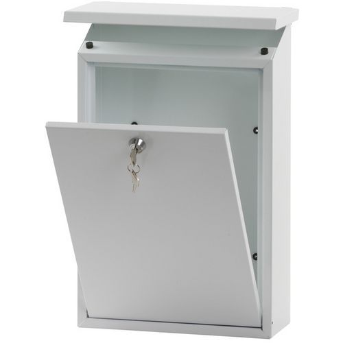 - Poštovní schránka s cylindrickou vložkou pro montáž na zeď. Otevírací klapka je pod víkem, takže pošta je chráněna. Otevírání: 25 x 4 cm.