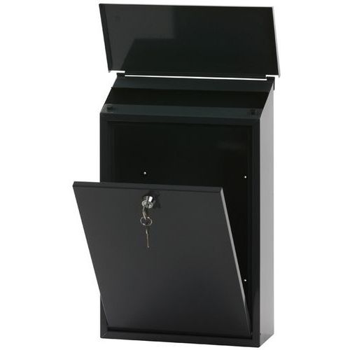 - Poštovní schránka s cylindrickou vložkou pro montáž na zeď. Otevírací klapka je pod víkem, takže pošta je chráněna. Otevírání: 25 x 4 cm.