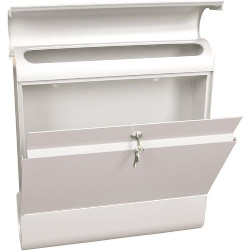 - Nástěnná poštovní schránka z práškově lakované pozinkované oceli, vybavená cylindrickým zámkem.