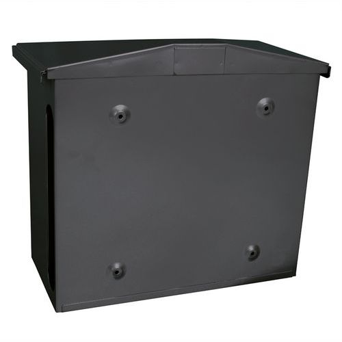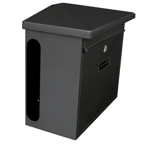 - Nástěnná poštovní schránka z práškově lakované pozinkované oceli, vybavená cylindrickým zámkem a držákem na malou jmenovku.