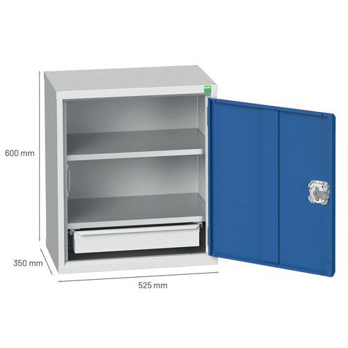 Nástěnná skříňka Bott Verso Economy, 60 x 52,5 x 35 cm, 2 police, 1 zásuvka, šedá-modrá