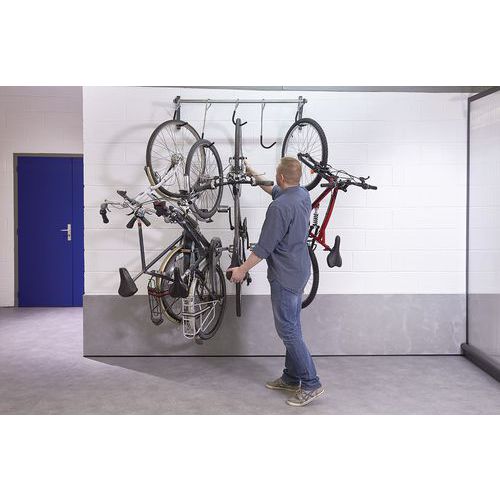- Nástěnný nosič kol s háčky, kapacita 5 kol.