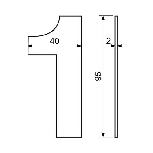 Nerezové číslo ve 2D provedení, výška 95 mm, znak 1