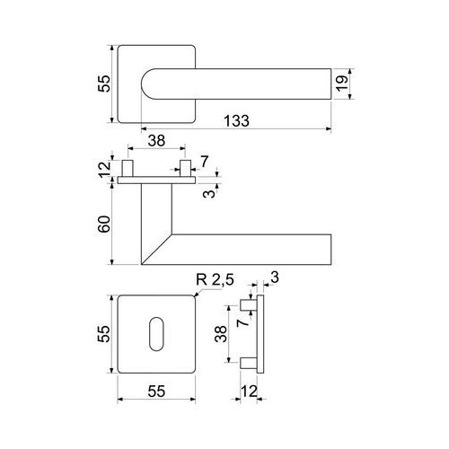 Nerezové interiérové kování Form.BB, magnetické rozety