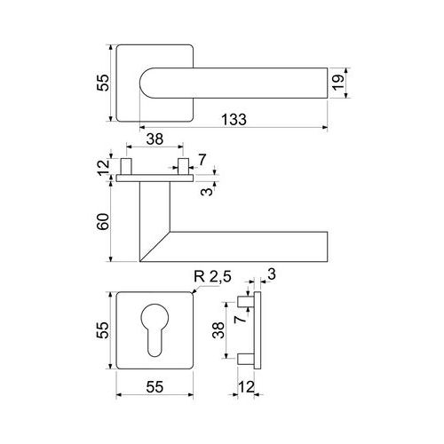Nerezové interiérové kování Form.PZ, magnetické rozety
