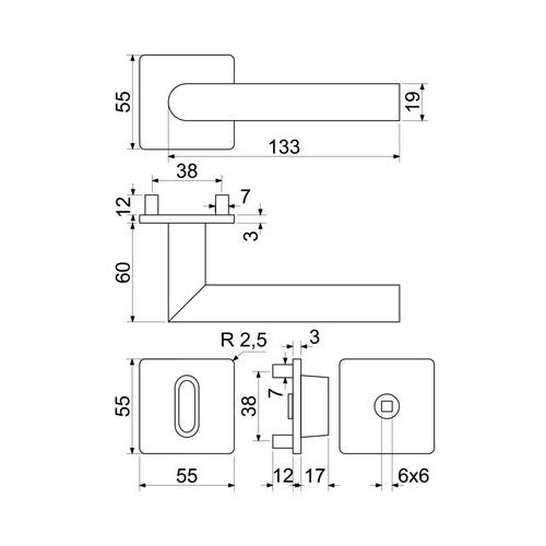 Nerezové interiérové kování Form.WC, magnetické rozety, nerez