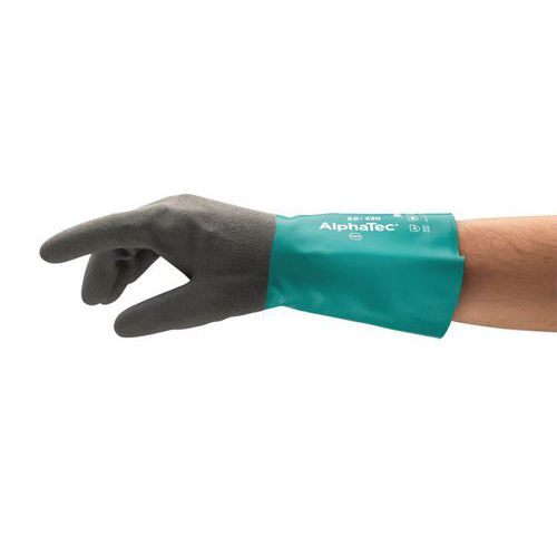 Pracovní nitrilové rukavice se semišovým vnitřkem vhodné pro práci v potravinářství.