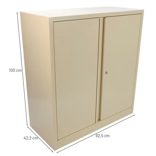 Nízká kovová spisová skříň Manutan Expert Real, 100 x 92,5 x 42,2 cm, béžová