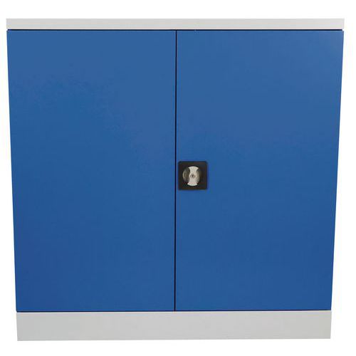 Nízká kovová spisová skříň Manutan Expert Steel, 100 x 100 x 42,3 cm, šedá/modrá