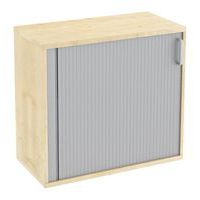 Nízká skříň ve dvou barevných variantách s roletou v šedostříbrné barvě, otevírání doleva. Výškově nastavitelné vyrovnávací šrouby.
