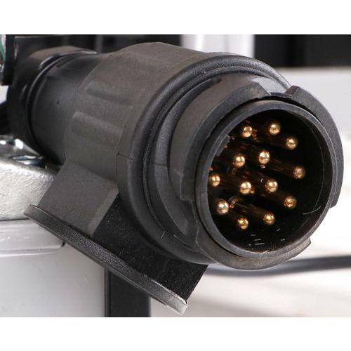- Nosič je opatřen 13-pólovou zástrčkou. Pokud máte na autě 7-pólovou zásuvku, musíte si pořídit redukci ze 7 na 13 pólů.