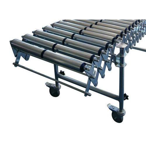 Nůžkový dopravník s ocelovými válečky, šířka 500 mm, 32 os