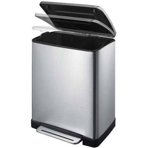 Obdélníkový odpadkový koš s nožním pedálem E-Cube 50 l z matné nerezové oceli