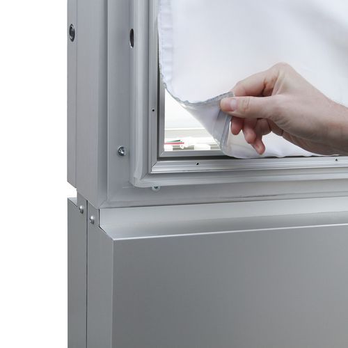 - Zaklapávací profily nahoře i dole pro snadnou výměnu plakátu.