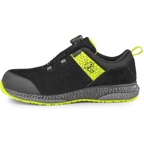Odolná, komfortní a navržená pro náročné podmínky. Tato polobotka s ESD ochranou a reflexními prvky vyniká svrškem z broušeného hydrofobního mikrovlákna s perforací pro lepší prodyšnost a speciálním utahovacím systémem pro rychlé stažení i uvolnění obuvi. Podšívka z prodyšného mesh materiálu a stélka HI-POLY poskytuje maximální pohodlí po celý den. Zesílení paty mikrovláknem a gumová ochrana špice zvyšují životnost a odolnost nejvíce namáhaných části obuvi. Svršek je rychleschnoucí a snadno se udržuje. Bezpečnostními prvky jsou kompozitní špice a textilní planžeta. Podešev z kombinace PU a gumy nabízí výbornou stabilitu a bezpečnost – je protiskluzová, antistatická, odolná vůči olejům a kontaktnímu teplu až do 300 °C. Velikost: 37-48 Ochrana: S vyztuženou špičkou a podrážkou Reflexní doplňky: Ano