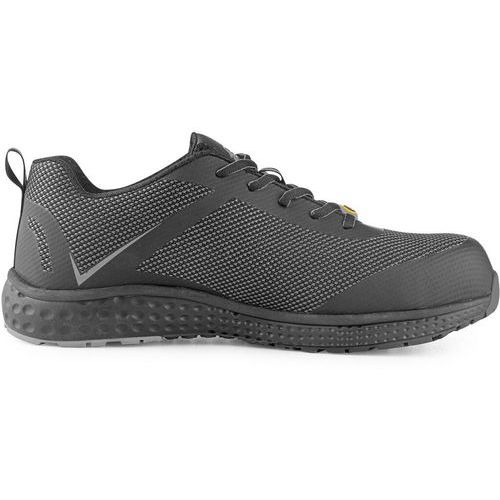 Bezpečnostní ultralehká ESD polobotka s prodyšným svrškem, ochrannou špicí a antipenetrační stélkou, reflexní doplňky. Materiál: kombinovaný svršek z lehkého a prodyšného úpletu s KPU doplňky, odlehčená nano ochranná špice z karbonových vláken, antipenetrační stélka z netkané nano textilie, bez kovových součástí, prodyšná textilní podšívka z polyesteru, podešev: EVA / guma, protiskluzová, olejivzdorná, antistatická, odolná proti propichu. Velikost: 36-48 Stupeň ochrany: S1PS Ochrana: S vyztuženou špičkou a podrážkou Reflexní doplňky: Ano