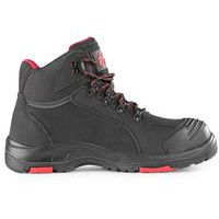 Bezpečnostní kotníková obuv s ocelovou špicí a planžetou, kožená, PVC reflexní pásek. Materiál: svršek z hydrofobní hladké nubukové kůže kombinovaný s PU doplňky, přední část zesílená proti okopu, prodyšná a oděruvzdorná textilní podšívka, podešev: PU/guma, antistatická, olejivzdorná, protiskluzová, odolná proti propichu a kontaktnímu teplu do 300 °C. Velikost: 37-48 Stupeň ochrany: S3 Ochrana: S vyztuženou špičkou a podrážkou Reflexní doplňky: Ano