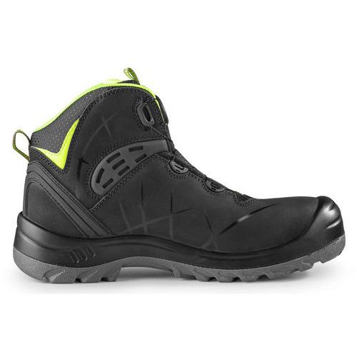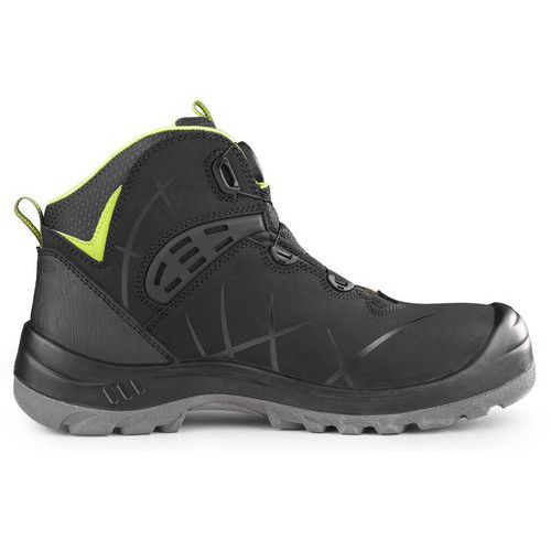 Bezpečnostní kotníková obuv, kožená s plastovou špicí a planžetou Dyna-Flex®, reflexní doplňky. Speciální utahovací systém umožňuje rychlé stažení i uvolnění obuvi. Materiál: svršek z 1,6 - 1,8 mm štípenkové nubukové kůže (z jednoho dílu), vnější PU ochrana okopu a TPU ochrana paty, podšívka z prodyšné oděru odolné textilie, podešev: PU-PU, olejivzdorná, antistatická, protiskluzová a odolná proti propichu. Velikost: 37-48 Stupeň ochrany: S3S Ochrana: S vyztuženou špičkou a podrážkou Reflexní doplňky: Ano