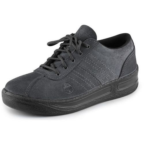 Kožená polobotka pro práci i volný čas. Materiál: svršek z italského hebkého semiše, tj. vlasové hovězí kůže, která je pro delší životnost opatřena hydrofobní úpravou, podšívka z měkkého bavlněného froté, podešev: PU-PU, protiskluzová, odolná vůči palivovým olejům, absorbující energii v patě. Velikost: 35-48