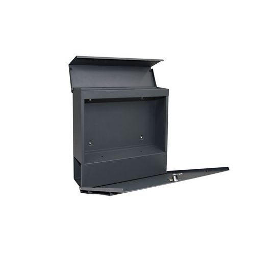 Ocelová schránka s dekorativními okénky z čirého plexiskla, umožňující průhled do jejího vnitřku, antracit