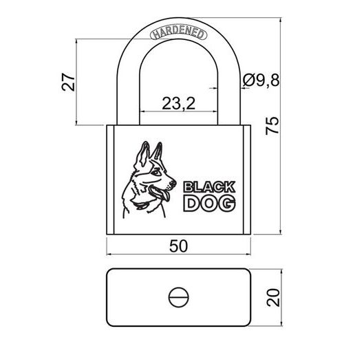Ocelový visací zámek v elektroforézní povrchové úpravě, průměr třmene 9,8 mm, výška 27 mm, černá