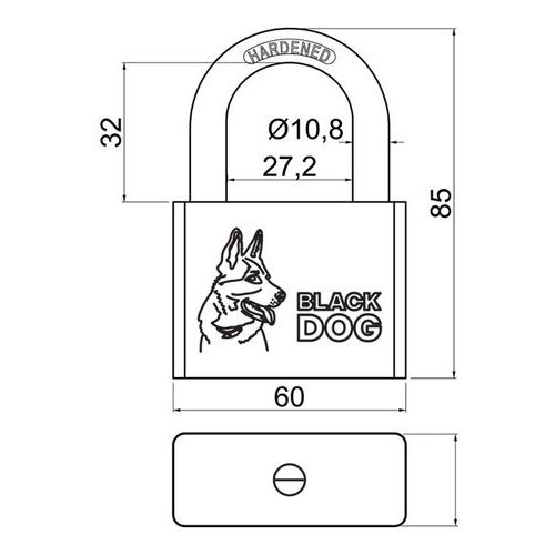 Ocelový visací zámek v elektroforézní povrchové úpravě, průměr třmene 10,8 mm, výška 32 mm, černá