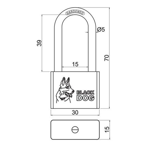Ocelový visací zámek v elektroforézní povrchové úpravě, průměr třmene 5 mm, výška 39 mm, černá