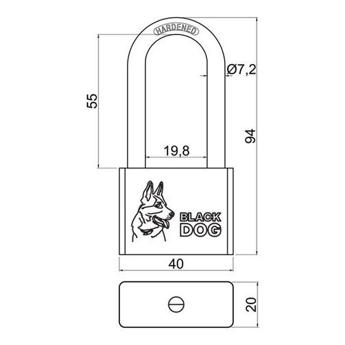 Ocelový visací zámek v elektroforézní povrchové úpravě, průměr třmene 7,2 mm, výška 55 mm, černá