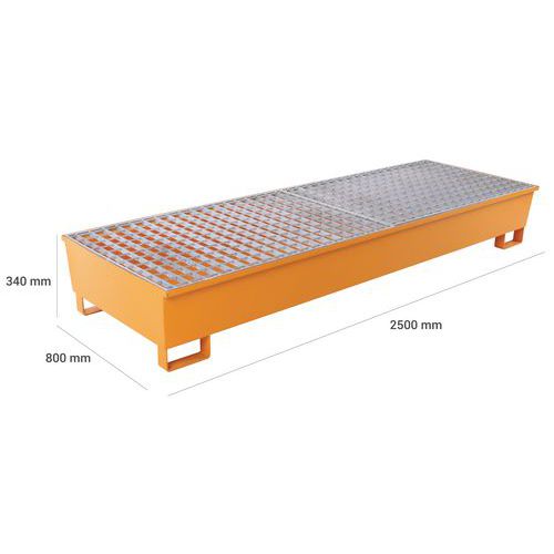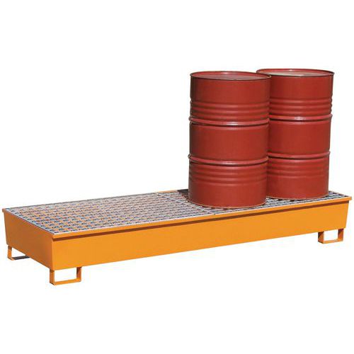 Ocelové záchytné vany pro uložení 1 - 4 sudů o objemu 200 l. Vhodné pro skladování látek ohrožujících vodu, odolné vůči rozpouštědlům a uhlovodíkům. Nosnou část tvoří vyjímatelný pozinkovaný rošt. Snadná manipulace pomocí vysokozdvižného nebo paletového vozíku, manipulace s nákladem je možná pouze u van pro 1 sud. Záchytné vany jsou oboustranně vodotěsně svařované. K dodání v pozinkovaném provedení nebo lakovaném provedení v oranžovém odstínu RAL 2000.