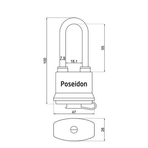 | Název produktu | Ocelový visací voděodolný zámek s plastovým krytem s prodloženým třmenem, průměr třmene 7 mm, výška 52 mm, |