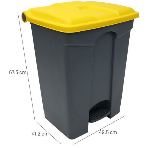 Odpadkový nášlapný koš Manutan Expert, 70 l, šedá/žlutá