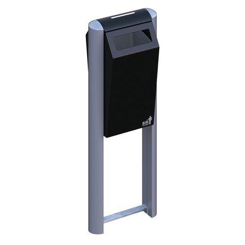 Robustní a odolná proti vandalismu. Tento odpadkový koš lze upevnit mezi hliníkové upevňovací sloupky zasazené do země.