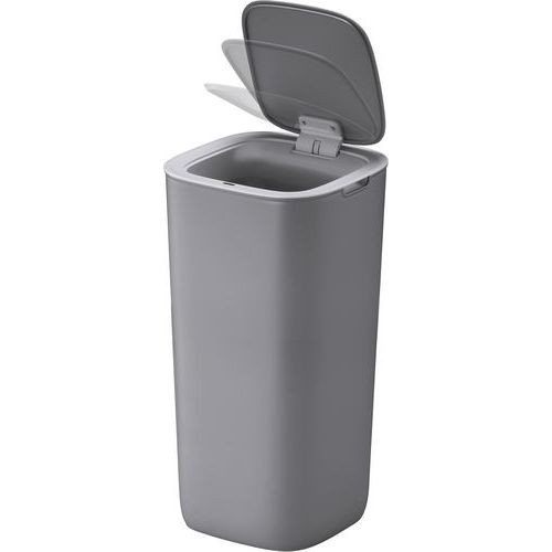 - Trendy čtvercový odpadkový koš ze syntetického materiálu, vybavený senzorem a spínacím tlačítkem pro otevření víka jednoduchým gestem.