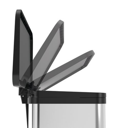 - Pedálový odpadkový koš, obdélníkový s černým plastovým víkem, s tichým zavíráním.