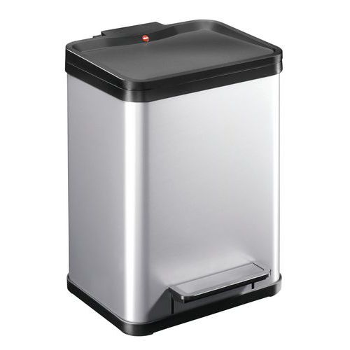 - Pedálový odpadkový koš, obdélníkový, s černým plastovým víkem, s tichým zavíráním.