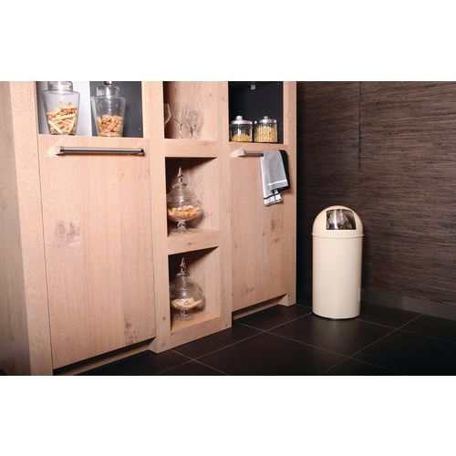 - Odpadkový koš s tlakovým víkem a kovovou vložkou .