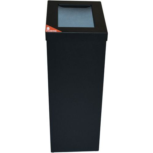 - Modulární odpadkový koš s horním otvorem a svorkou na odpadky.