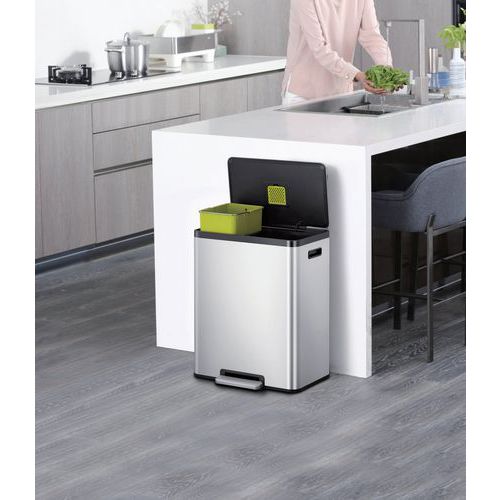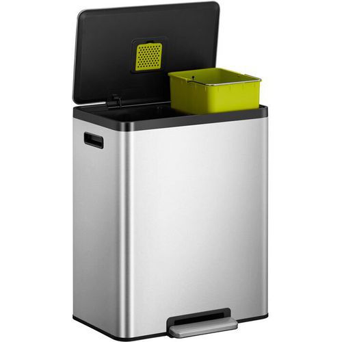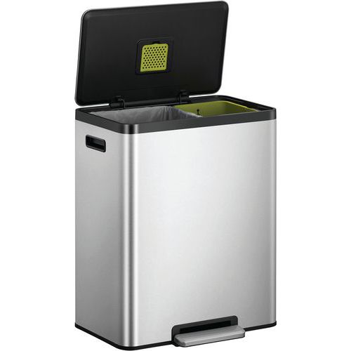 - Vybaven víkem s měkkým zavíráním a integrovaným pachovým filtrem a dvěma syntetickými vložkami (36+24 l) pro třídění odpadu.