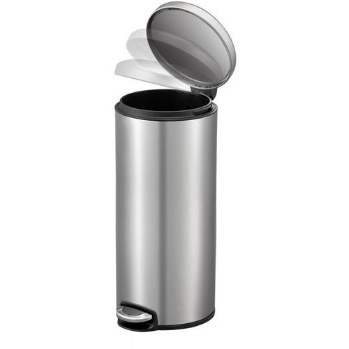 - Exkluzivně navržený odpadkový koš s elegantním pedálovým mechanismem, vypouklým víkem s tichým zavíráním a plastovou vložkou.