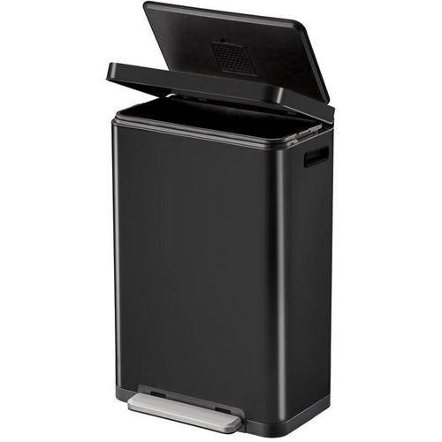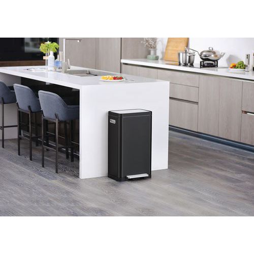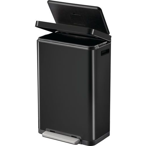 - Elegantní obdélníkový odpadkový koš s extra širokým pedálem, plastovou vložkou, víkem s tichým zavíráním a funkcí stay-open.