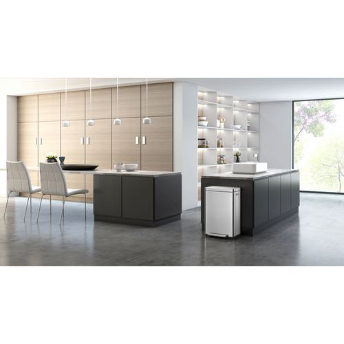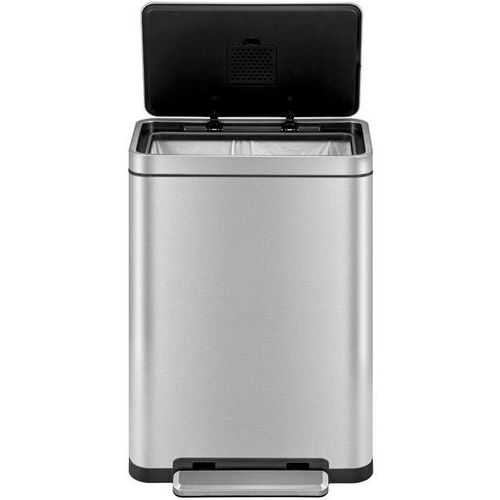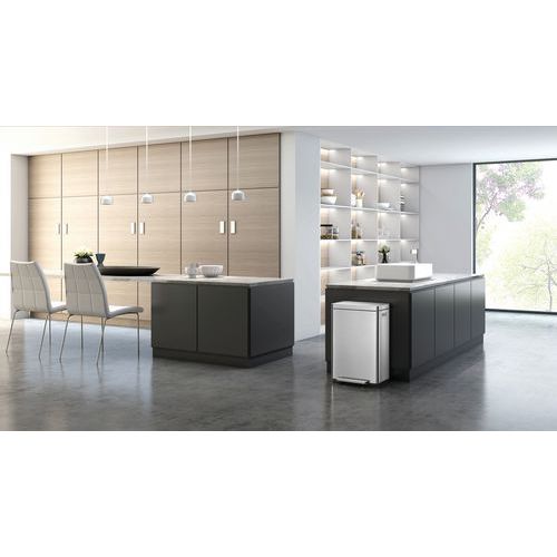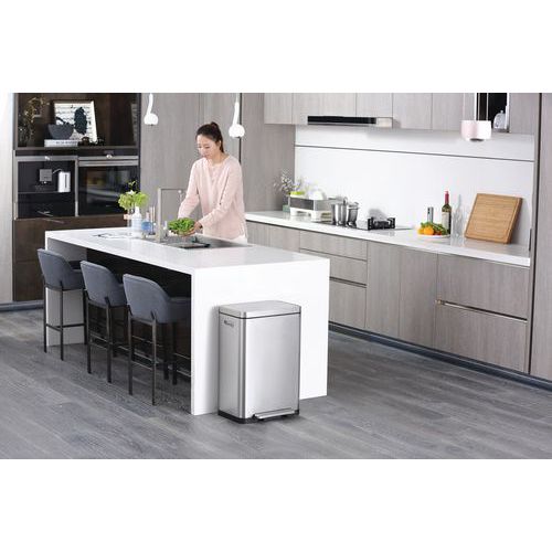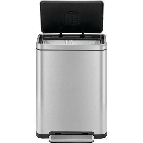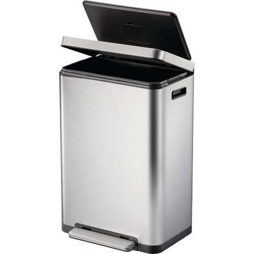 - Elegantní obdélníkový odpadkový koš s extra širokým nášlapným pedálem, plastovou vložkou, tichým zavíráním víka a funkcí stay-open.